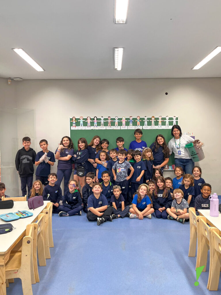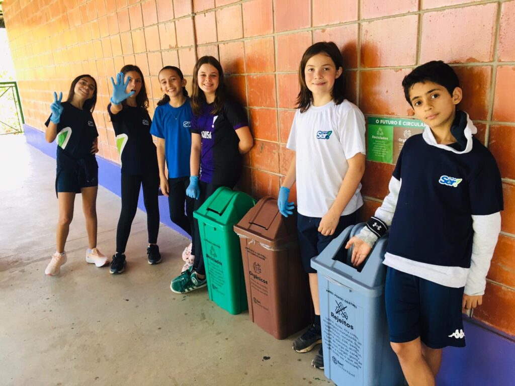Quando o assunto é reciclagem, não basta apenas disponibilizar o espaço correto para o descarte: é preciso garantir que o uso seja feito da forma certa. Pensando nisso, a Coordenação de Sustentabilidade criou o projeto “Agentes Lixo Zero” – alunos do EFAI e EFAF (do 4º ao 8º ano) que atuam como verdadeiros fiscais ambientais. O objetivo é disseminar as práticas da Economia Circular em nossa comunidade escolar. Os grupos se reúnem uma vez por semana nas unidades Ser! Campolim, Ser! Boa Vista e Ser! Criança, para: