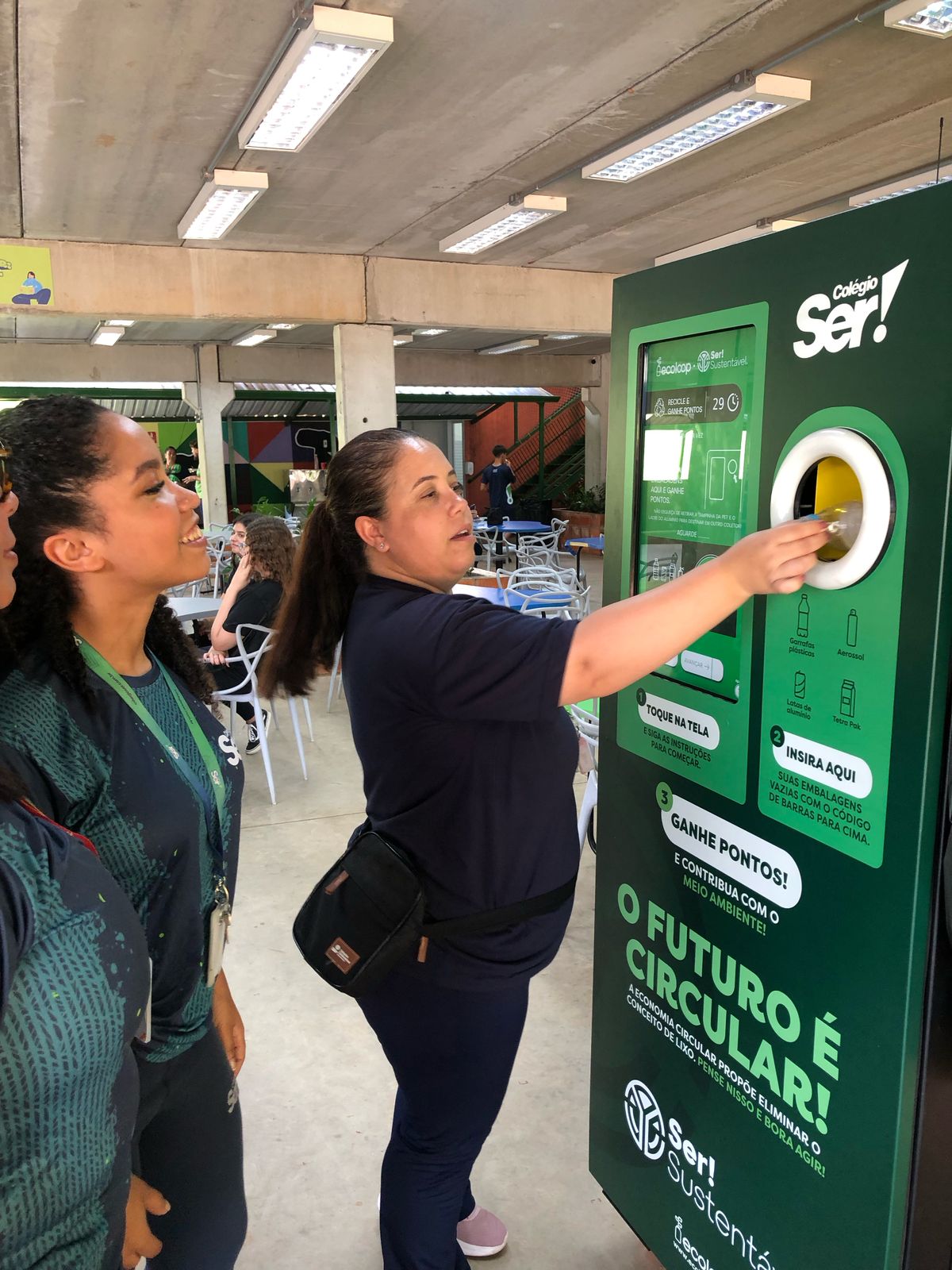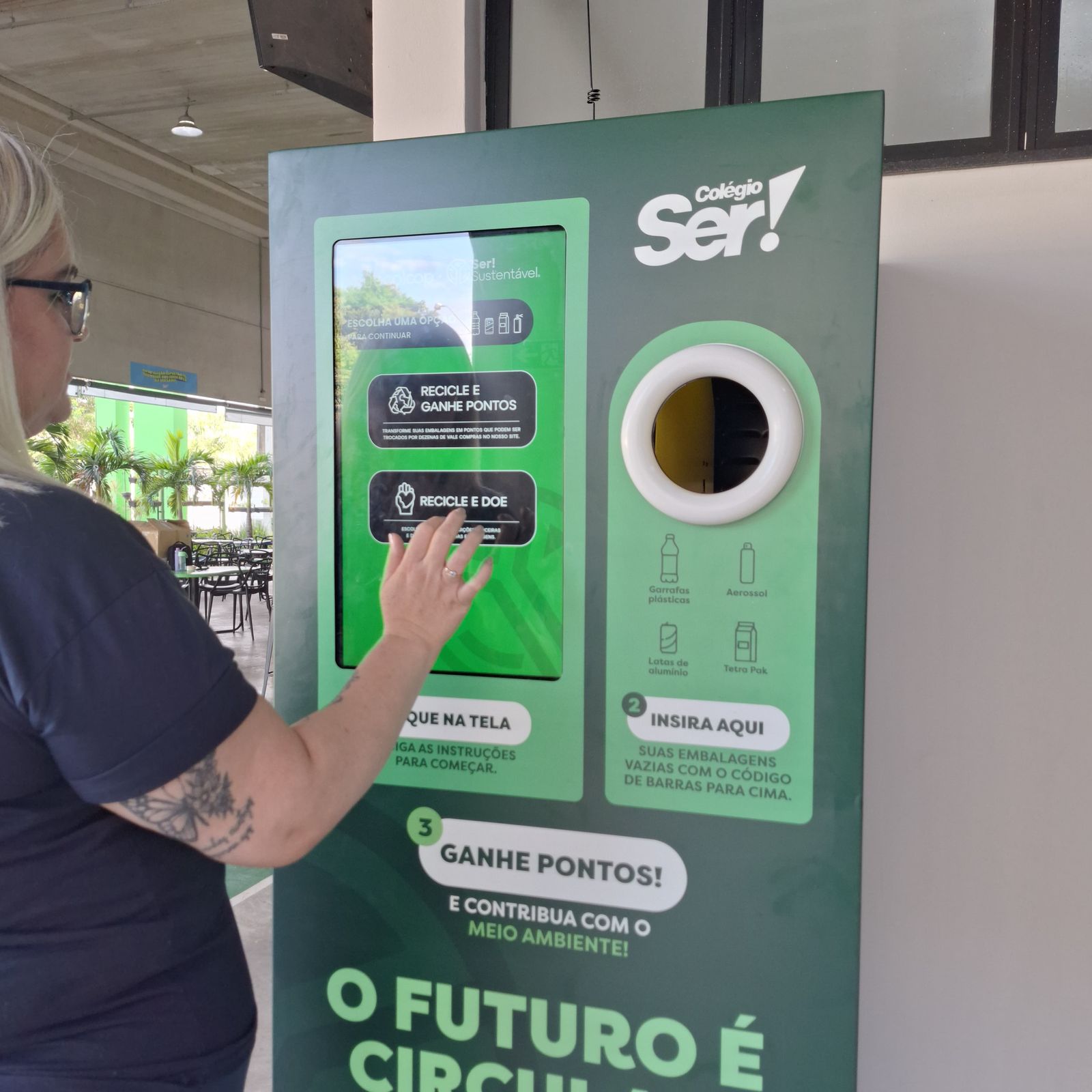 Os projetos da Coordenação Ser! Sustentável seguem firmes e, como parte das ações, queremos apresentar a Máquina Recicladora – um equipamento de coleta inteligente de resíduos pós-consumo. Com ela, alunos, professores e colaboradores do Colégio Ser! terão a oportunidade de vivenciar uma nova cultura de descarte, transformando materiais que seriam jogados fora, em recursos valiosos para a comunidade e para o meio ambiente.