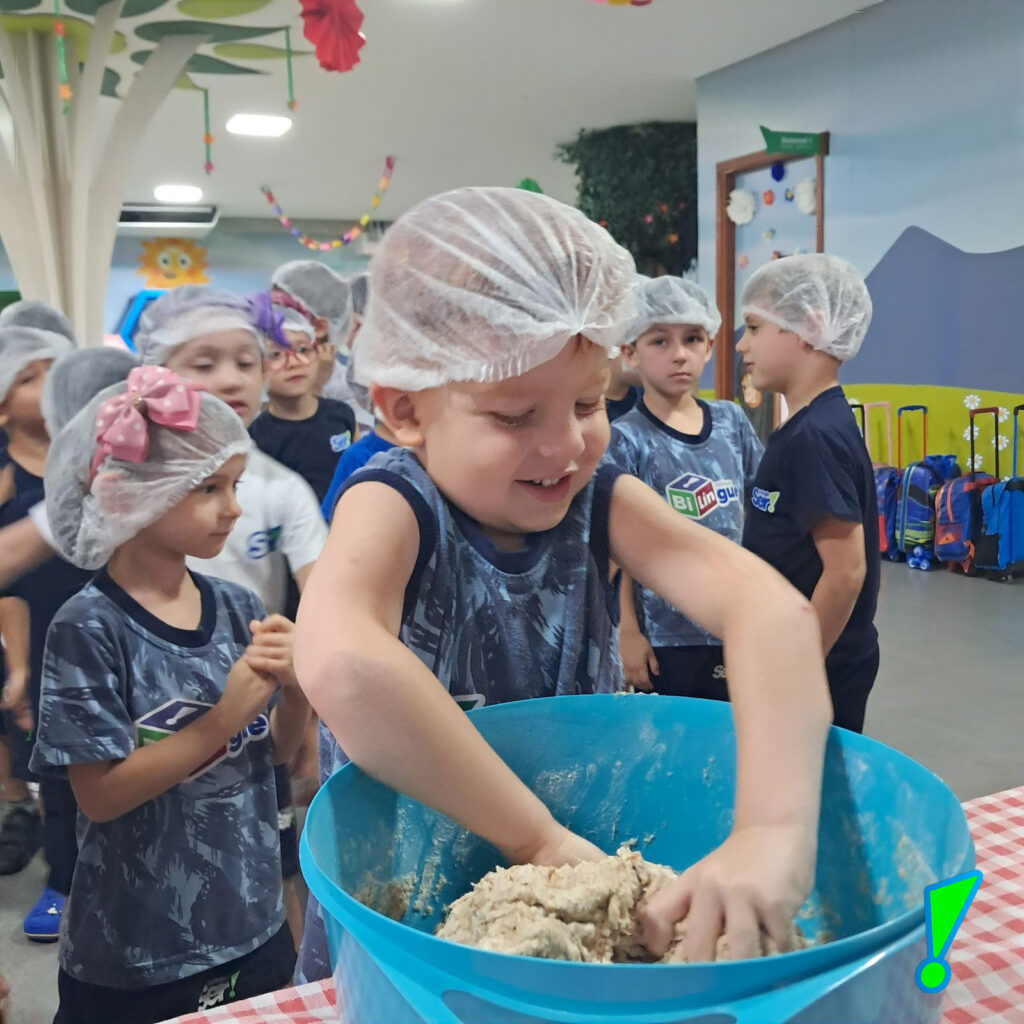 Na educação infantil, as crianças experimentam todo o processo de preparo do pão e este é um ritual repleto de significados.